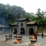 信阳市罗山县境内的灵山风景区,是有名的佛教圣地,山中有多处寺庙和庵堂,其中较重要的景点就是灵山寺。灵山寺是一座比较特殊的寺庙,寺庙僧尼同寺,也就是寺中既有和尚,也有尼姑。唐玄宗之女——建宁公主曾经在这里出家为尼、带发修行;明太祖朱元璋曾经敕封灵山寺为“国庙”。灵山寺距离景区大门不远,游客可以步行前往,也可以乘坐景区内的观光车前往,车费5元。