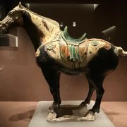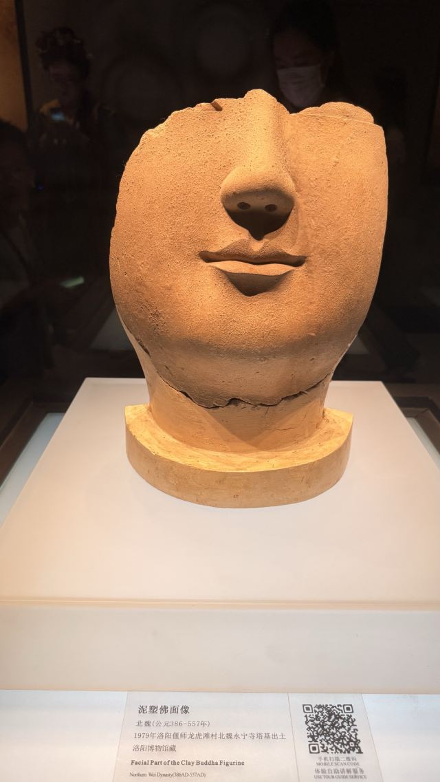 在洛阳博物馆内,你可以看到夏代的青铜酒器“乳钉纹铜爵”;还有战国时期的“错金银铜鼎”,这件青铜鼎以金银作为装饰,使用了鎏金、错金银等工艺,嵌金银对称和谐,装饰华丽;以及北魏时期的“泥塑人面像”,这座佛像虽然因为大火,原有的彩绘损失殆尽,但这些却丝毫没有影响她的美丽;而唐代的三彩灯和三彩马,色彩鲜艳,造型独特,三彩灯的外形吸收了佛教艺术的内涵,三彩马在造型上遵循着“圆方圆”的传统构成法则,体现了唐帝国奔放向上的风范。