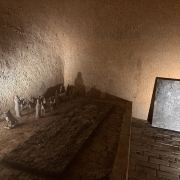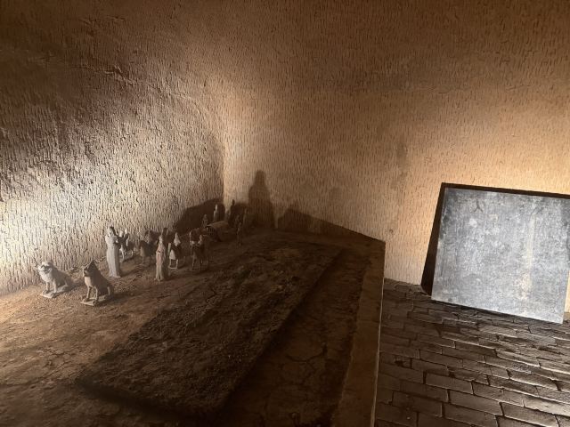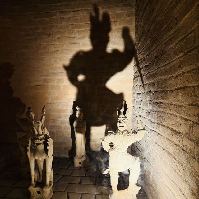墓室中还摆放了不少出土文物的复制品,如北魏的陶俑和生活器皿、唐代三彩等。墓室中还有西晋、北魏、唐宋的墓志,以及丰富多彩的壁画,如打鬼图、妇人启门图、升仙图等,这些堪称古代绘画艺术的瑰宝。