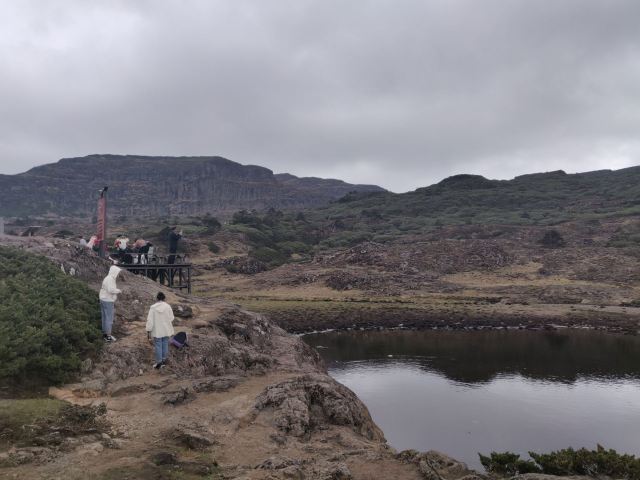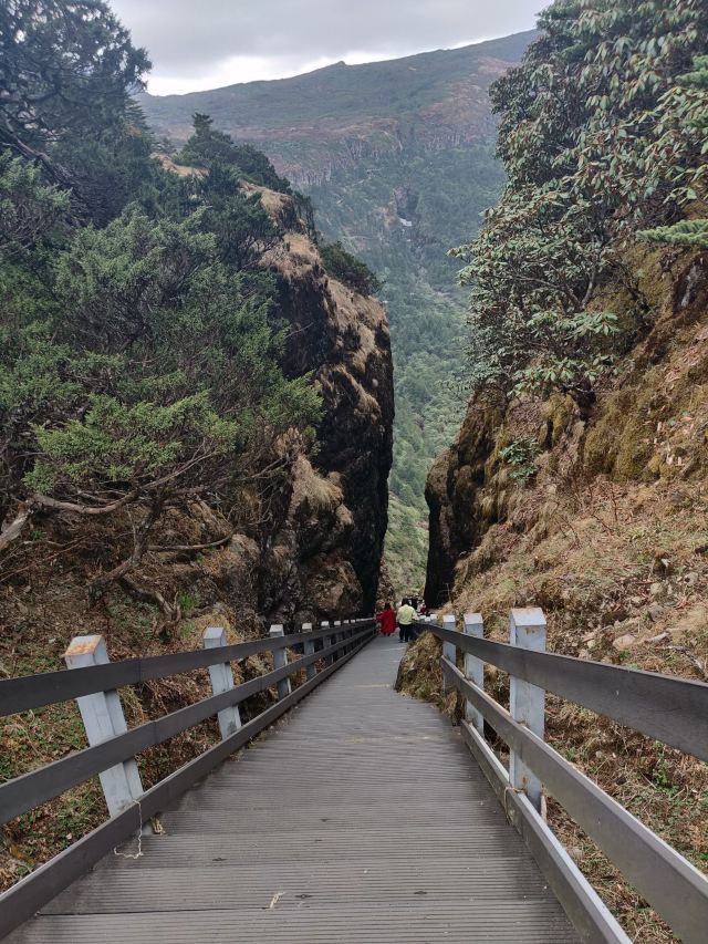 5分 超棒轿子雪山座落于昆明禄劝县转龙镇,距昆明一百多公里。有一条旅游专线,从昆明直通山下,但路况不好,至少需3小时车程。 我们提前一天到达山下的转龙镇,第二天一早,开车进入景区后,换乘景区大巴,一路盘山道,蜿蜒向上。 大巴开了20多分钟,停车点的海拔已经到了3500多米,而我们的乘车点才2000米左右。 沿着栈道,走了一个多小时,路过了几个景点,来到一个叫精怪塘的景点,这是半山腰的一个草坪,其中一汪清泉,前方千丈山崖拔地而起,巍峨险峻,横绝眼前,峰峦叠嶂,高耸入云,这是佛光崖,轿顶还在前面,更高。 顺着佛光崖的脚下,继续向前,海拔越来越高,眼看都4000多米了。继续走了个把小时,绕过佛光崖,又来到一个大草坪,大概3、4百米长宽,两侧都是悬崖绝壁,崖下浓雾沉沉,深不见底,偶见巨峰怪石,不禁让人头皮发麻,不敢近前。正前方,一座山峰横生矗立,如巨石屏风,截断前路,贯通天地,这就是最高峰,轿顶。沿着曲折陡峭的栈道,开始攻坚。这段路程较为难走,有段栈道几乎垂直向上,我几乎不敢向下看。来到山脊线,又要斜上登顶。这段路也很险,栈道狭窄,只容一人通过,两侧就是悬崖峭壁,尤其是来路的另一侧,完全是万丈深渊。小心翼翼通过后,终于登顶,4223米。 原路返回到佛光崖底部,我们选择了另一条下山的路。这时,远望轿顶虽然依旧浓雾弥漫,但这里已经清爽起来,高山草甸的风光一览无遗。湛蓝的天,洁白的云,澄清的湖水,巨大的山石,宽阔的草地上,无数红的、黄的、紫色的小花遍地开放,还有慵懒的羊群和牛群,悠闲的吃着草,不时咩咩、哞哞的发出声音,很让人心旷神怡。