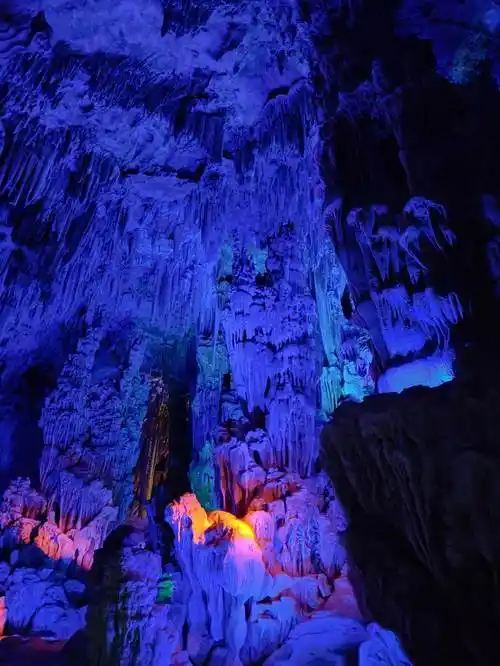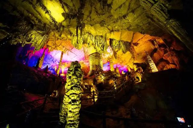 神秘的地下溶洞:灯光映照下的钟乳石、石笋宛如童话中的仙境✨,每一步都像穿越时空的奇幻旅程。