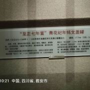 3.看点:(1)门口广场,石虎两只守大门、造型古朴似旧臣,雅安历朝历代遗迹最多是汉,无论汉石像砖还是汉阙,抑或是汉墓汉石兽,汉是雅州深刻的烙印,而这两只仿造汉墓兽,要在加上一座汉阙,韵味就更足了;广场正中是镇馆之宝“龙凤环”的放大青铜像,龙口衔尾、生生不息,宛若苯环、意蕴无穷,凤鸟立于身,整体造型美轮美奂,正是中华民族天圆地方的美感所在。博物馆牌匾由著名篆书书法家苏士澍撰写,采用篆书也体现了雅安浓厚的汉味。(2)展馆不大,一共两层,分了汉嘉神韵、辟疆拓土、汉风流被、雅风流韵、边茶藏马五个展厅。汉嘉神韵是汉石刻展,辟疆拓土是先秦展,汉风流被是汉文化展,雅风流韵是唐宋及以后展,边茶藏马是茶马古道展,由此观之,两个展馆与汉有关,再次凸显雅安厚重的悠久汉文化。缺点是作为市博物馆,缺少对雅安整体地形与发展沿革的说明,包括雅安名称的由来也未可得知,这些可能会在雅安生态博物馆内找到吧。(3)藏品独特。本以为雅博作为偏远地带的地级博,只有一些普通的展品,观后确是大开眼界:汉代棺橔,置于地下透明玻璃内,金丝楠木雕成,雅安是全国最大的金丝楠产地,阴沉木的价值世所闻名;汉白玉摇钱树座子,雅安宝兴盛产汉白玉,汉墓摇钱树又最多见与西南,这个摇钱树已经没了,但座子上的螭龙、西王母还静静等待寻觅永生者的到来;明清雅州府印,保存完好,满语可见;汉代石棺,上刻西王母与“天下第一吻”,这个“吻”就是一男一女“秘戏图”,被搬到雅安进城口放大成了雕塑;汉代镇墓石兽,出土于发生地震的芦山姜城遗址(字数限制,游记里见)