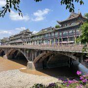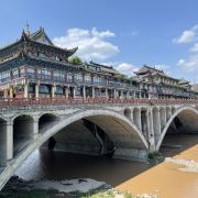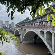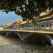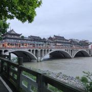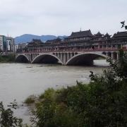 雅州廊桥位于雅安老城区中部,连接南北交通,横跨青衣江。雅州廊桥内有餐饮,糕点,特色小吃和手工艺品。