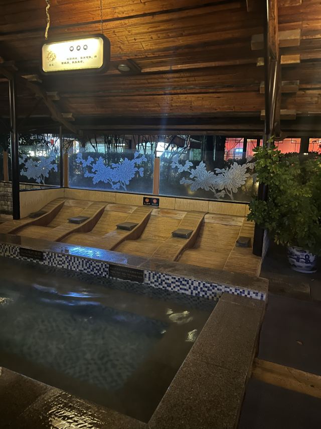 在天沐泡温泉是件挺享受的事,度假村内的建筑为江南园林风格,环境优美。泉池很集中,四周都有电视,并且通常会提供自助姜茶和热酸梅汤。泡完温泉可以去二楼休息,吃点免费的水果瓜子。此外,也有自费的足疗捏脚可以参加。夏天景区内的水上乐园会开放,届时不仅能泡温泉,也能体验清凉。