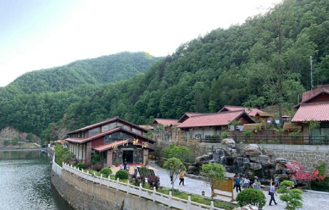 汤河裸浴温泉度假区地处熊耳山海拔750米的大裂谷之中,两侧山势奇伟,森林茂密,清澈的灌河水在门前汇流成湖,倚坐温泉池中,看群峰倒影山浮水,听林间鸟语蝉鸣声。