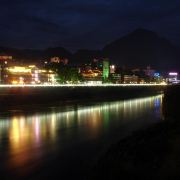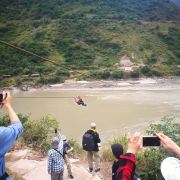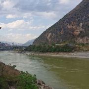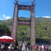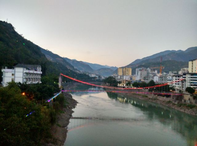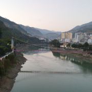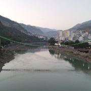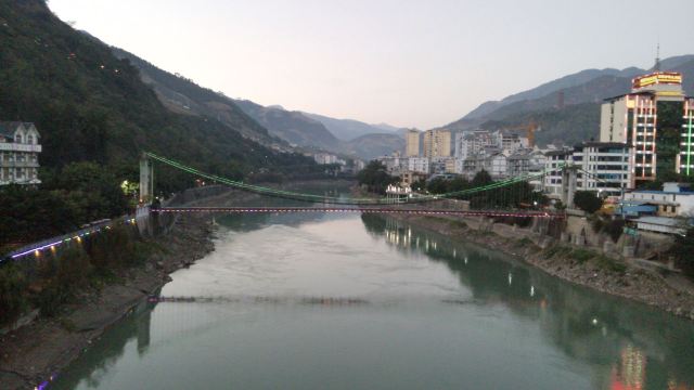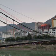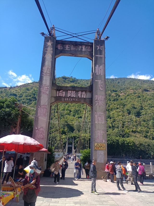 六库是进入怒江州旅行的南大门。汹涌奔腾的怒江穿城而过,将六库分为两个部分,江上有怒江大桥(公路桥)和向阳桥(步行桥)将两部分连接起来。向阳桥是游客必到的地方,建于1970年,桥两头的塔架上至今还留有:“一桥飞架南北,天堑变通途”的诗句,是此桥真实写照。区别在于,向阳桥是“一桥飞架东西”。