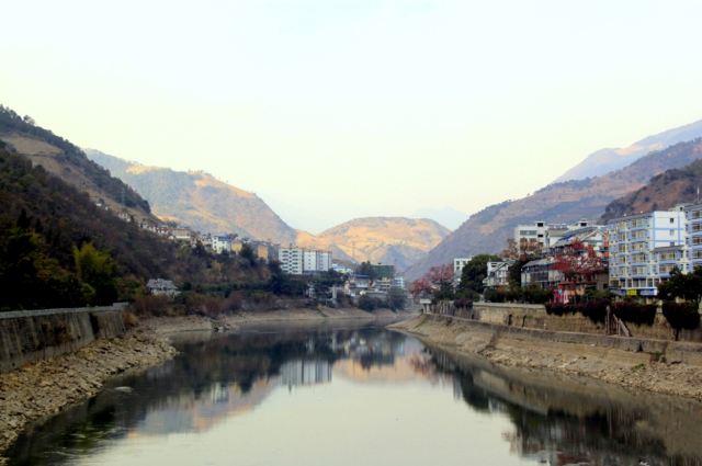 怒江边有个小镇,不知道名称,但房子都是黄、白两色,黑、灰的山字顶,很整齐,很漂亮。