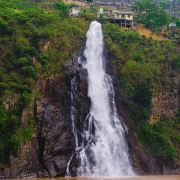 但瀑布很大,颇有“飞流直下三千尺”的气势,而且水量一直很饱满,不是忽大忽小的那种,所以又不像居民用水,难道是山上的溪流汇聚而下?