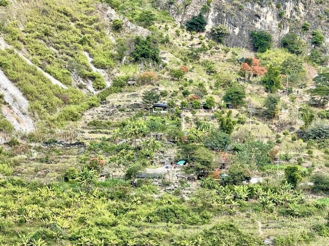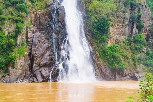 突然,在对面的山上,看到这样一个瀑布。不知道这是人工瀑布,还是居民用水的直接排放,感觉瀑布的源头,像是一个人工出口。