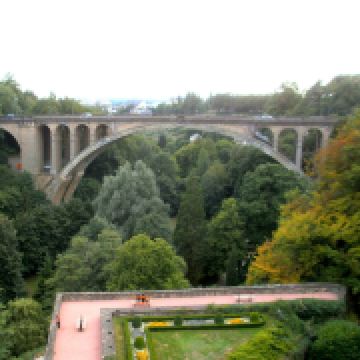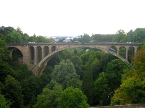 阿道夫大桥位于卢森堡市,是一座建于19世纪的石质圆拱形桥。桥宽17.2米,为四车道,此外还有两条人行道。大桥是欧洲著名建筑物之一,它跨越峡谷,连接新旧两个市区。而支撑桥梁的拱门左右对称,外形非常壮观。