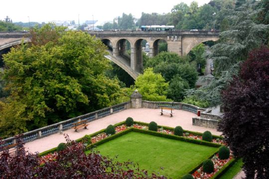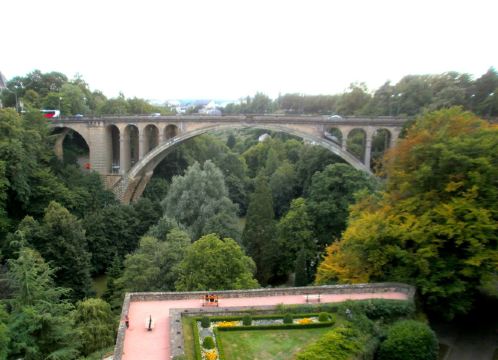 桥高42米、长84米,是一座由石头砌成的高架桥,位于卢森堡车站西北方。该桥跨越峡谷,连接新、旧两市区,而支撑桥梁的拱门左右对称,非常壮观,是欧洲地区杰出的建筑物之一,从桥上眺望远处的风景十分美丽。