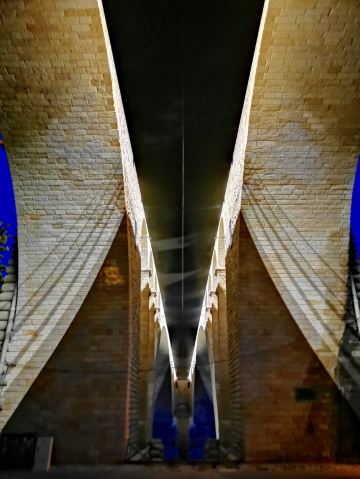 从桥上眺望,远处的风景十分美丽,而且大桥本身就是一道不可多得的视觉盛宴,尤其是在夜晚的时候,淡黄色的灯光照着大桥的砖石上,给人一种眩幻的感觉。