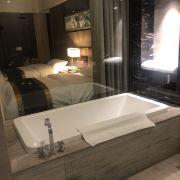 3分 不错温泉是很不错的,池子也多,虽然有一些没开。景色设计也不错,无论是老人小孩还是年轻人都有地方玩。本来应该评五星,减掉的两颗给二楼的服务员。5.1和5.2我去了两次,第一次回去的时候前台服务员提醒我二楼有免费食品要我去吃,所以第二次我还特别带我女儿去了。二楼全程无人引导,送的食物就是几坨西瓜和四种茶(要自己倒),我选了沙发坐,也没人跟我说不行,等我坐下了一会来个了服务员大妈问你们衣服是湿的?(我住酒店的就没换衣服准备回房间洗澡)我说是的啊(不是特别湿被自己的毛巾吸干了)结果大妈说那你们坐那边去,这沙发都被你们搞发霉去。我当时就很生气,我过来的时候也没人说不行,不能坐沙发你就不能好好说,非要这么冲。这个服务培训还是要好好搞下的,虽然是免费的服务不是你们反复问我也不会去二楼,又不是欠你的,好像我占多大便宜似的。其他的服务都没问题,不要被这一粒老鼠屎搅坏了。