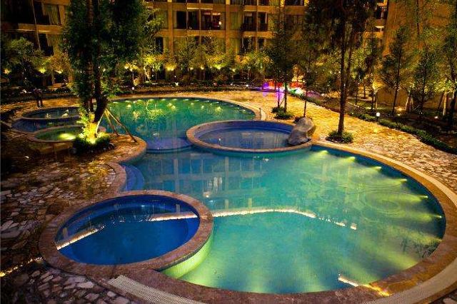 - **泡池种类**:温泉区内有100多个大小不一、形态各异的泡池,包括牛奶浴、红酒浴、中药浴、花瓣浴、动力按摩池等,满足不同游客的需求。