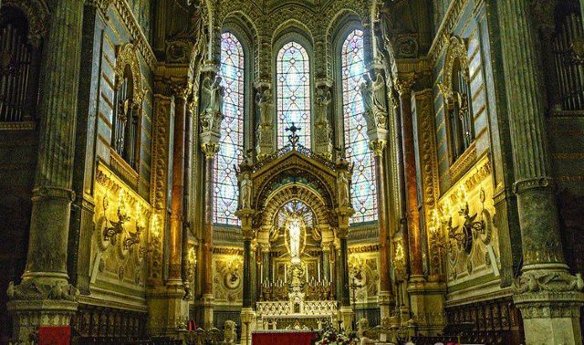去到富维耶圣母教堂的时候, 哥特式和拜占庭的风格 ,充满了法兰西的色彩 。