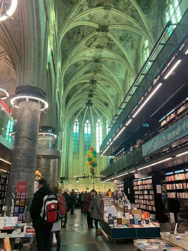 4分 满意马斯垂克的天堂书店是一座旧教堂翻建的。外观还是古朴的教堂模样,里面则是一个现代化的书店。除了宗教类书籍,其他方面也很多,英文,法文,德文的书籍都有。