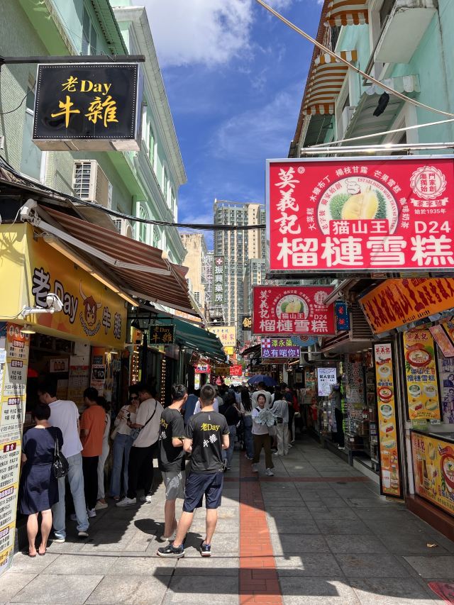 街上有不少的葡国餐厅和澳门街头美食,所以游客比较多,气氛也很好。另外我们去了吃安德鲁葡挞,很好吃!