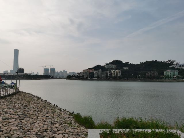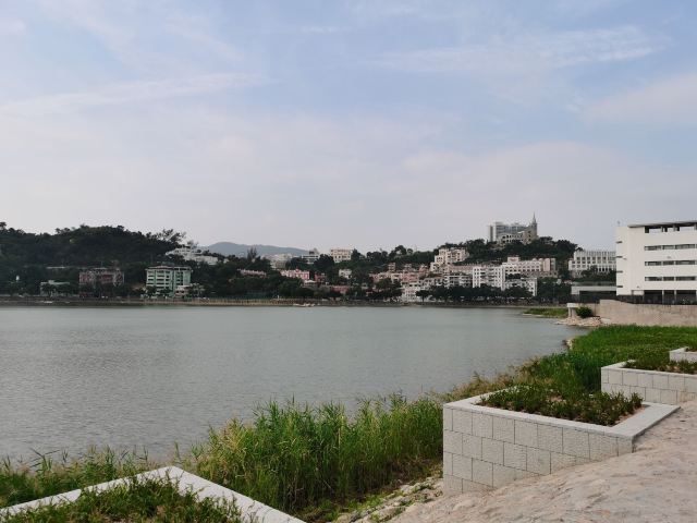 西湾湖位于澳门半岛民国大马路,湖面波光粼粼,映照着澳门的现代化建筑,十分美丽。