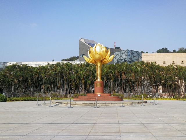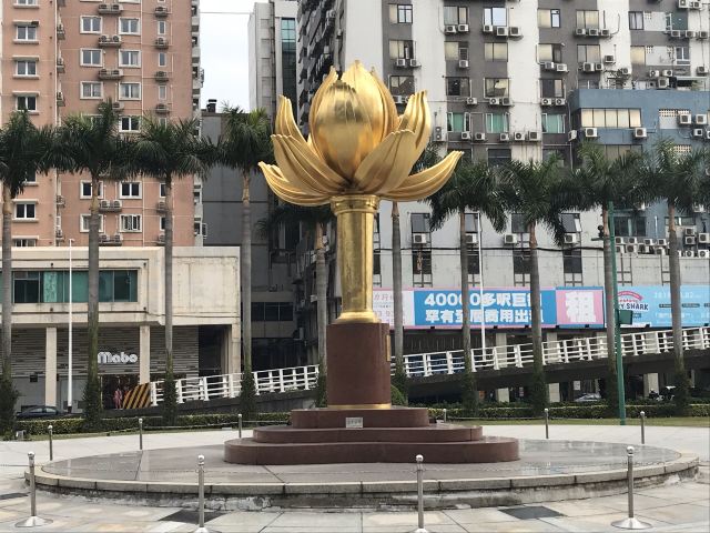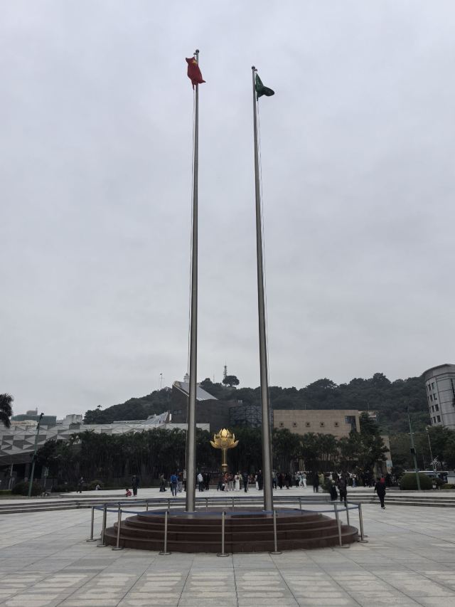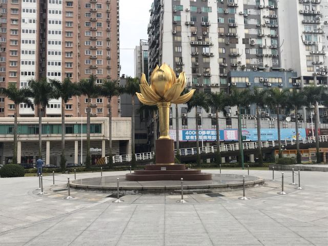 广场的地理位置优越,靠近金沙酒店,对面就是海,是前往渔人码头、东望洋灯塔等著名景点的必经之路。广场虽不大,但开阔整洁,首先映入眼帘的是国旗和澳门特别行政区区旗,再往里走就是著名的盛世莲花雕塑。