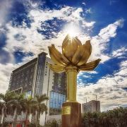 4分 满意金莲花广场,澳门的心脏地带,以标志性的金莲花雕塑闻名遐迩。广场宽敞开阔,设计典雅,四周绿树环绕,环境优美宜人。雕塑金光闪闪,寓意着繁荣与和谐,是澳门回归祖国的重要标志。每当节日庆典,广场热闹非凡,成为市民欢聚、游客留念的热门地点。无论是白天还是夜晚,金莲花广场都散发着独特的魅力,让人流连忘返。