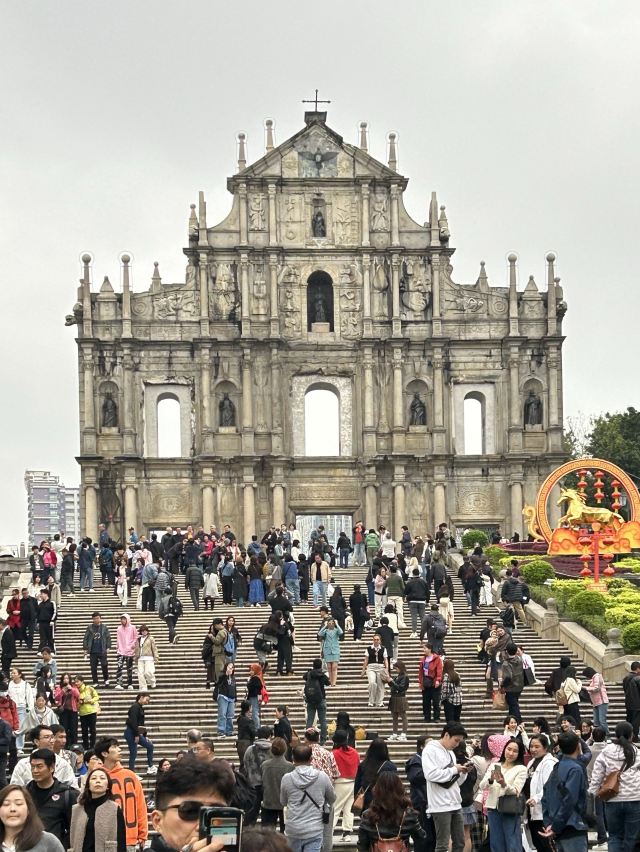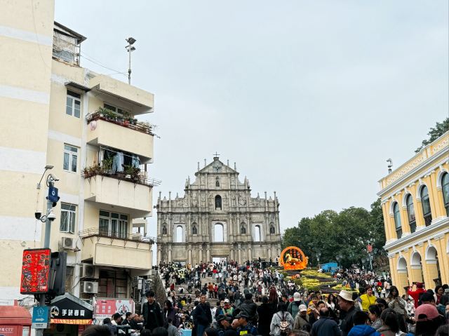 5分 超棒大三巴牌坊是澳门地标,也是澳门历史城区核心景点,实为圣保禄大教堂前壁遗址。教堂1602年始建,1637年落成,1835年大火后仅存此壁。“三巴”是葡语“圣保禄”的粤语音译。它采用巴洛克风格,融合牡丹、菊花等东方雕刻元素,有“立体圣经”之称,紧邻恋爱巷,是到访澳门必打卡的历史古迹。平日里这里人山人海,引来不少世界游客前来打卡。