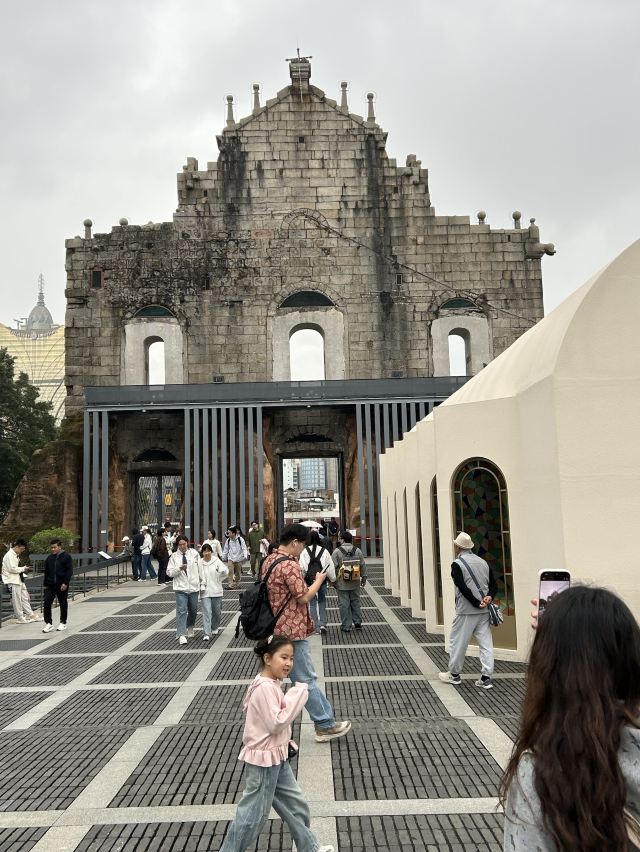4分 满意大三巴牌坊是澳门的文化瑰宝,巴洛克浮雕与东方纹样交融的27米石壁,定格了400年中西文明对话的史诗级瞬间[2^]。清晨薄雾中的剪影与夜间金色光雕,让同一座遗迹呈现截然不同的美学张力[3^]。提醒游客别错过地下墓室的幽暗叙事和恋爱巷的浪漫取景,手信街的杏仁饼香气与博物馆的象牙圣像,共同拼凑出立体的澳门记忆[3^]。