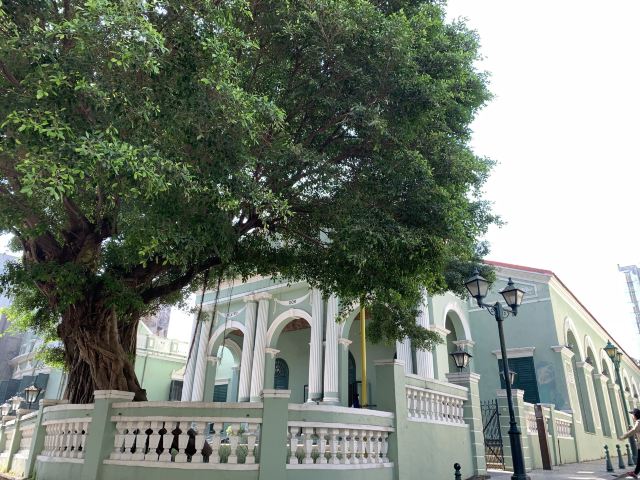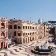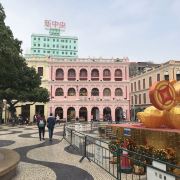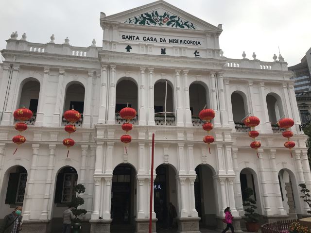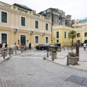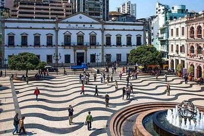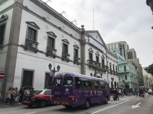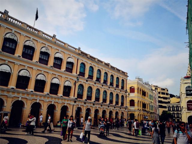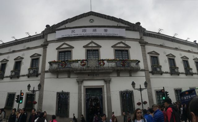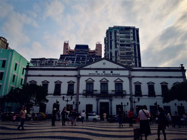 在新马路的旁边就能看到民政总署大楼,如果是夏天来到这里就能看到阳光从广场四周的墙上反射出的那种特殊的粉色尤其好看,可以坐在这里歇歇脚。民政总署大楼对面就是议事亭前地,可以在到里面散步以及购选一些手信带回去。
