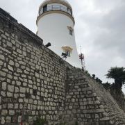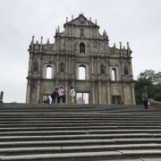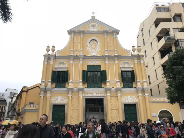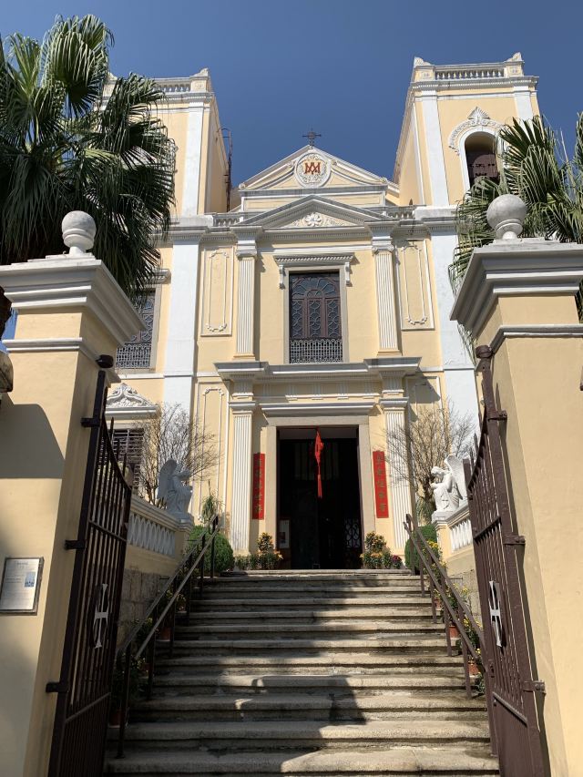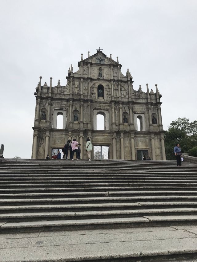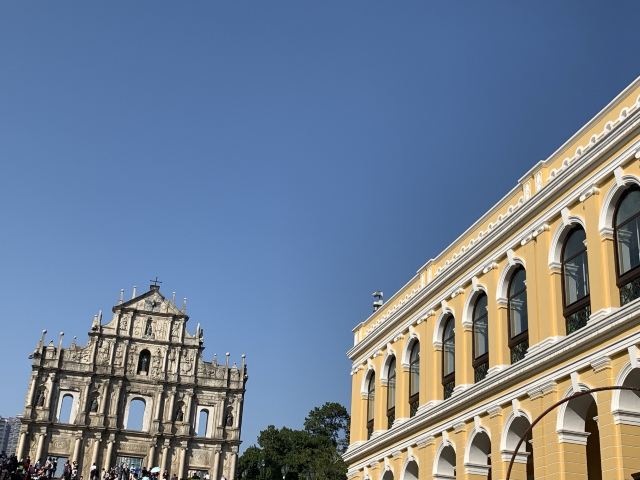从仁慈堂到左边走即可到达圣老楞佐堂,里面有不少的宗教壁画可以观赏。从这里可以直接走到大堂巷,就能到达卢家大屋,这座中西结合的风格建筑业很值得驻足。在卢家大屋的板樟堂前地的左边便是玫瑰圣母堂,门口处还有两处对联,颇有中国风的味道。然后顺着玫瑰堂前敌的大三巴街一直走,走到街的尽头,就能看见大三巴牌坊,这里也是当地的标志性景点,可不要忘记在这里拍照。