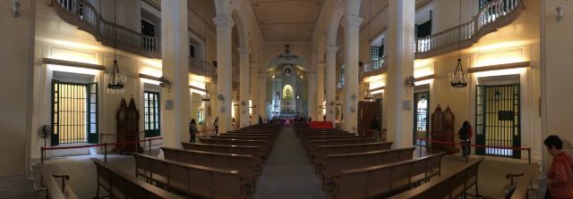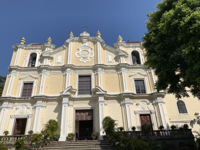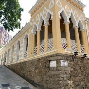 往前经过高楼街到风顺堂街就会看见圣老楞佐堂,这座教堂重门了浓厚的异域风情,尖状屋顶用琉璃瓦铺就,门楼中为十字架,两旁建有钟楼,也可以进去瞧瞧。往后退走到三巴仔横街即可到达圣若瑟修院及圣堂,圣堂的右边高塔上有大小不一的铜钟,而且可以去附近的福隆新街一带闲逛。这里又称为“红窗门”,以整条街道的两层高建筑物红色门窗为标记,很有特色。右转到岗顶前地,即可到达岗顶剧院、何东图书馆以及圣奥斯定教堂,这几处地方相距较近,而且都充满着浓郁的欧陆情调,所以很适合在这里拍照留念。