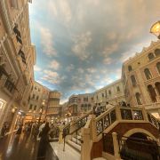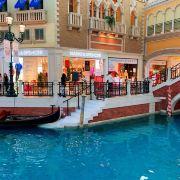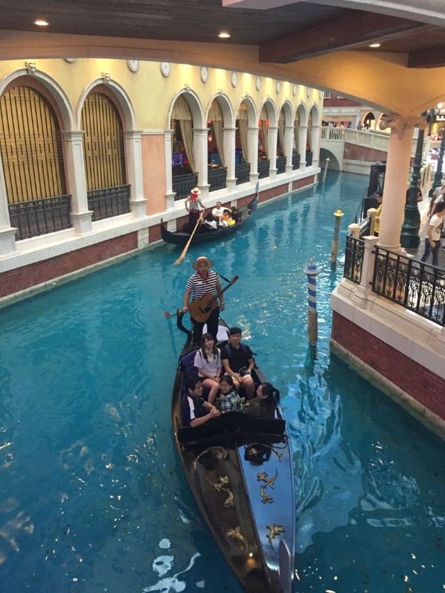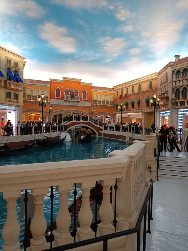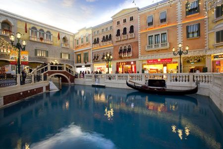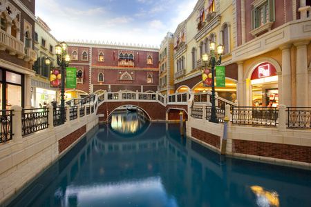 这里有著名的威尼斯人造运河和天空,可以见到商场内蓝色天顶上流动着白云,还可以乘坐贡多拉船游览!其实这里的建筑特式依照美国拉斯维加斯的威尼斯人酒店,以威尼斯水乡为主题,可以见到威尼斯特色拱桥、小运河及石板路,恍若置身威尼斯。