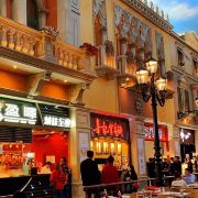 澳门威尼斯人度假区是集酒店、会展、购物、体育、综艺及休闲设施于一体的综合性场所。酒店以水都威尼斯为主题,内部布满威尼斯特色拱桥、小运河及石板路,充满意式浪漫狂放的异国风情。如果你是购物狂,不能错过大运河购物中心,来一次贡多拉之旅,头顶一幅偌大的天幕,即使子夜时分,一样会出现蓝天白云,让人分不出是室内还是室外、昼夜还是晨昏。大运河的两岸云集了几百家购物商铺,数十家的餐饮店,环境典雅瑰丽,仿如置身昔日威尼斯的街道。逛累了,也可在购物中心内的圣马可广场休息片刻,这里经常举行精彩的表演,如钢琴独奏、哑剧等。
