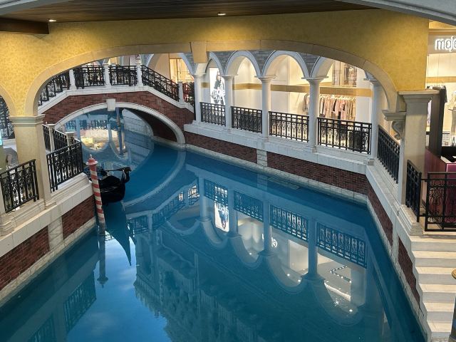• 购物中心内的特色之一是贡多拉游船,游客可以乘船游览,体验仿佛置身威尼斯的浪漫气氛。