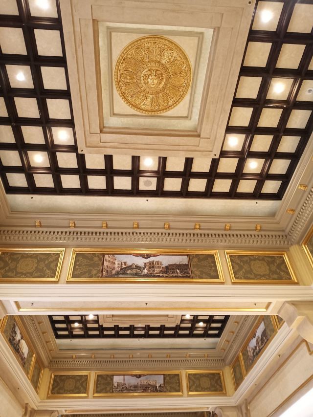 同样属于金沙集团旗下,一进门便是金碧辉煌的壁画吊顶。