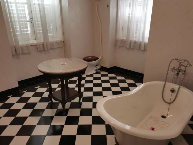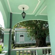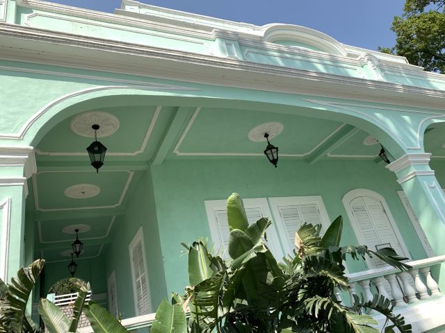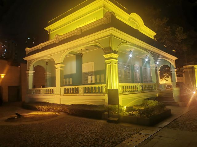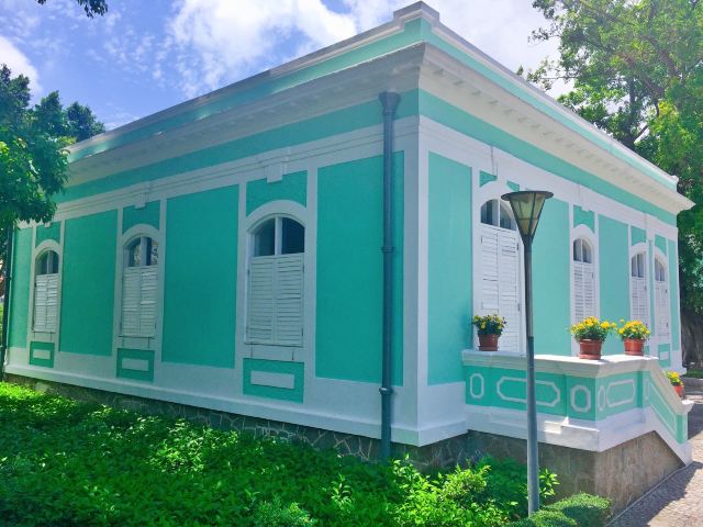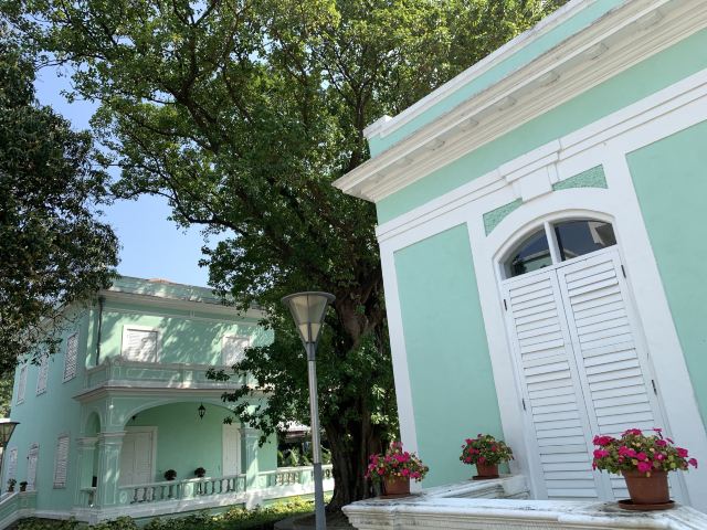 龙环葡韵住宅式博物馆为当地的八景之一,“龙环”是氹仔的旧称,这几幢建筑于1921年落成,曾是离岛官员的官邸,亦是一些土生葡人家庭住宅。当地有关部门将这一建筑群进行重新修建,并作为展示葡国建筑特色的博物馆。从威尼斯人度假村步行到这里,大概15-20分钟,沿着坡道一路下行,五座薄荷绿色的葡萄牙风格建筑很显眼,这便是龙环葡韵住宅式博物馆。其中三幢可以入内参观,由西到东分别建成“土生葡人之家”、“海岛之家”及“葡萄牙地区之家”,另外两间分别是“展览馆”和“迎宾馆”。