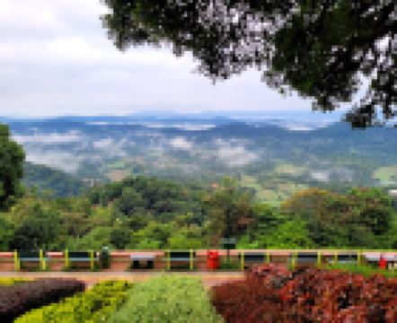 位于印度卡纳塔克邦古尔格县马迪凯里的Raja's Seat, Coorg,意为“国王之座”,是当地具有历史价值的旅游胜地之一。这个景点建于一座被称为甘地纪念堂(Gandhi Mantap)的花园中,原为科达古(Kodagu)王国的国王和王后观赏日落的场所,他们常在此地度过傍晚,欣赏夕阳西下的壮丽景色。Raja's Seat, Coorg是一个开放式的花园平台,四周被拱形的砖石柱廊环绕,俯瞰着连绵起伏的山脉和深邃的峡谷。这里的日落景色尤为迷人,尤其在雨季,薄雾弥漫时,景色更显神秘。此外,园内还有一条小火车轨道,供游客乘坐小火车游览周边景点。