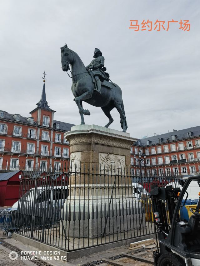 如果细细品味,会发现这座广场仿佛散发着难以穷尽的魅力,在高大的长方形回廊包裹之下,广场让置身其中的游人倍感空间上的束缚感,然而这束缚感又并非纯粹的压迫,而是巧妙地通过建筑底层优美的连体卷拱门自然溢出,不着痕迹。或许正是因为这种难以名状的微妙体验,游人、市民常常在此驻足不前,而艺术家和街头艺人们更是热衷此处,在造型严谨的空间里酝酿悠闲的生活气息。立于广场中心的是主持广场修建的菲利浦3世国王的骑马雕像。