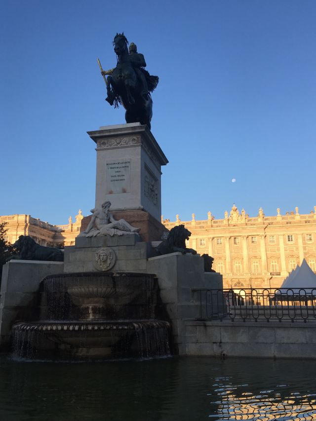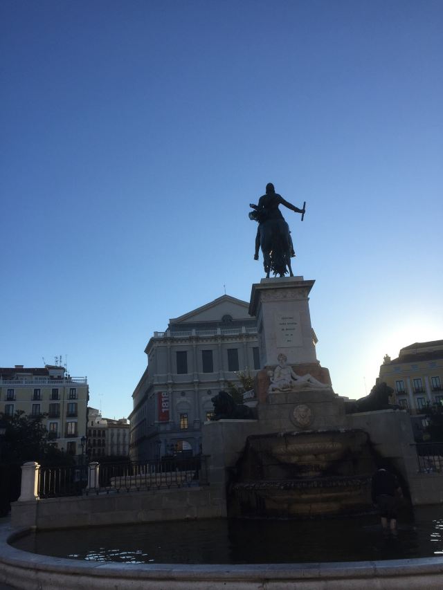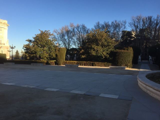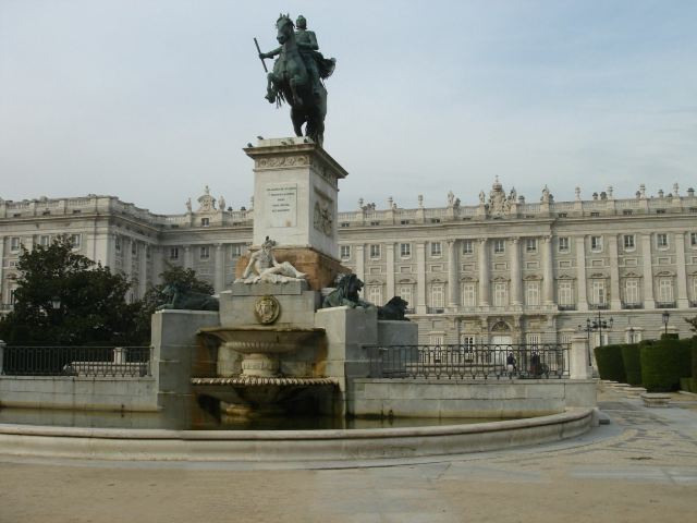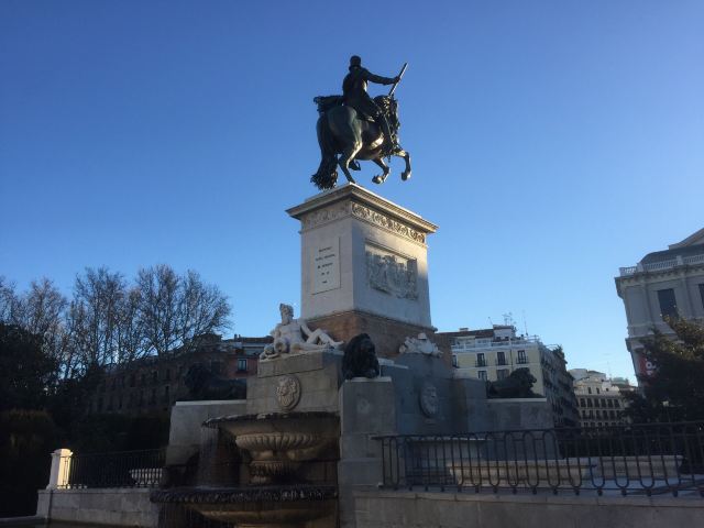 由入侵者何塞·波拿巴一世国王(拿破仑之兄)下令修建、1844年落成的东方广场,西邻马德里王宫东门(正门),东南与皇家剧院相接。广场内宽敞的林荫大道、规整的绿植造型、精美的圆形喷泉、整齐的高大雕像(约20尊西班牙历代国王的塑像),洋溢着浓浓的法兰西风情。