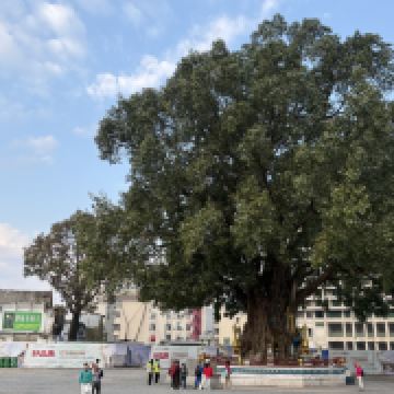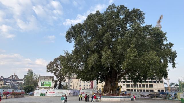 如今,塔顶上的树已高达30余米。塔包着树,树包着塔,结成了一个坚强的实体,塔就是树,树也就是塔。