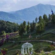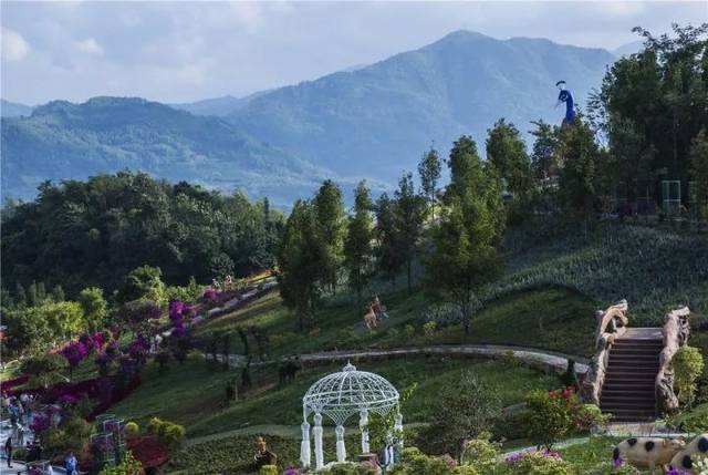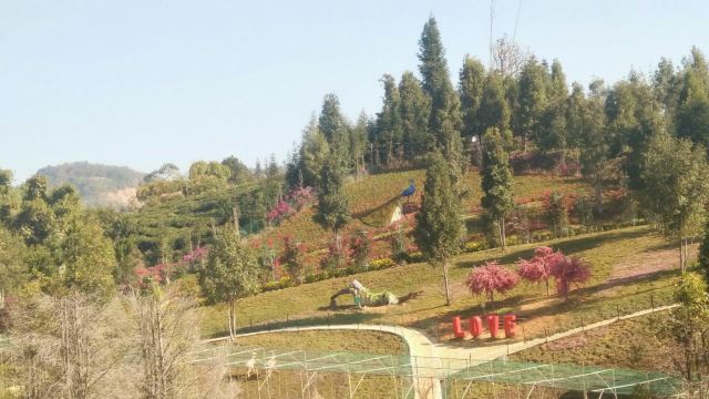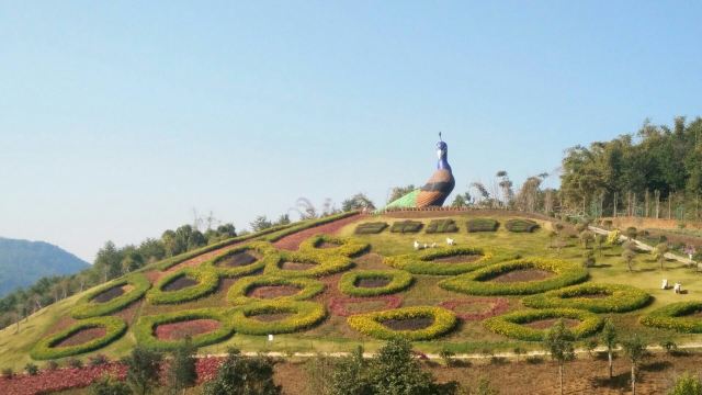 5分 超棒这里的人好热情……刚下车就有人指挥往哪走/不用到处询问谁谁谁.坐上他们口中所说的观光车来到第一个点茶茶园树立着一个透明三层玻璃塔走上去还是有点小刺激第二个点来到花海一眼望去@很是舒心虽无小河但给我的感觉就是小桥流水人家似的……后面相聚来到孔雀园……这里不止可以看万只孔雀还能看民族表演、孔雀羽毛做的各种大小饰品特别是那两套婚纱真是让我爱不释眼……接着来到冰雪王国……龙行滑道……丛林穿越不管玩哪个体验点都是我以前未见过的:好好玩…好刺激…最后来到许愿树……来到这看到一颗形态如孔雀般的吉祥树……许上多年的心愿结束今天的旅程(ง •̀_•́)ง✌✌✌✌✌