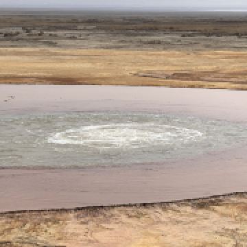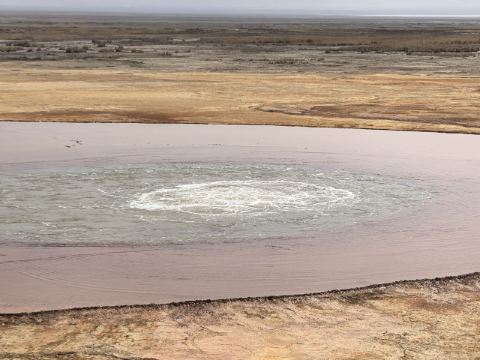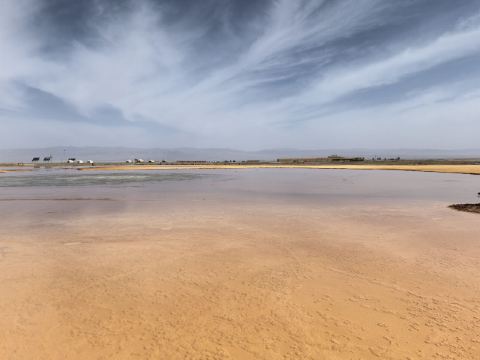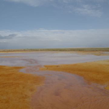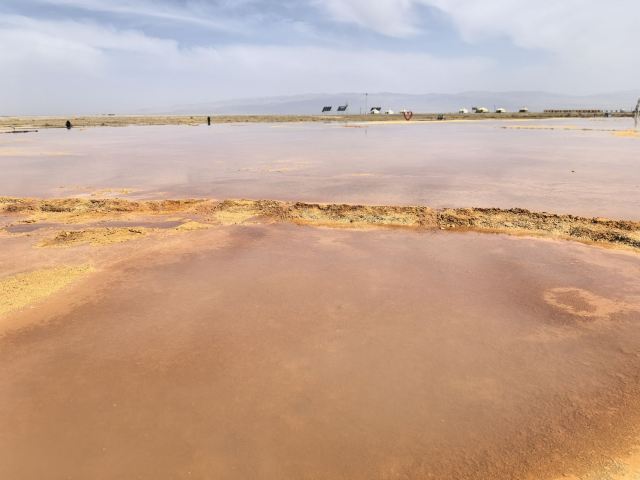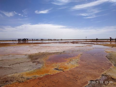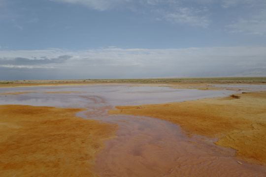🍀 艾肯泉久流之处寸草难生,蚊虫绝少,成为家牛羊和野生动物消毒避暑胜地。溪流蜿蜒穿过阿拉尔草原,最终注入天边的尕斯库勒湖。如果把尕斯比作美丽的姑娘,那么艾肯泉水是她的眼线美妆。含硫多的溪水流出一层层硬壳蟹黄,水中有管状体、甲壳虫等生物,形成了生物链。