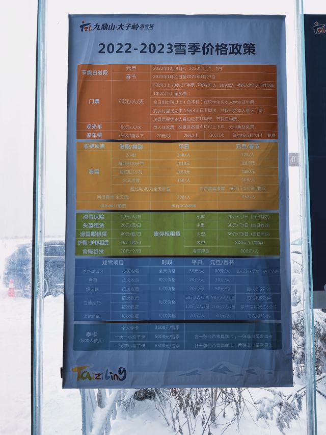 ①雪鞋、雪板/雪杖:门票包含