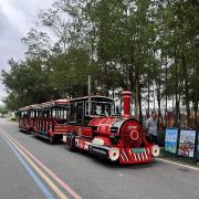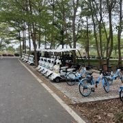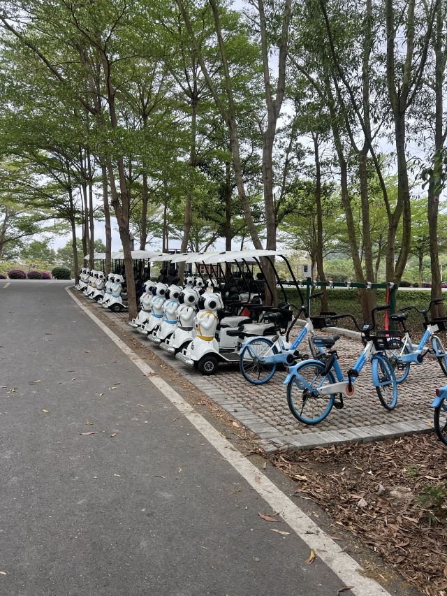有哈罗单车的多人车,可以和亲朋好友一起骑车逛露天矿。