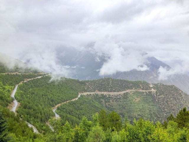 站在海拔3911m的观景台回望来路,腿还是软的...但看到云雾中若隐若现的雪山,又觉得一切都值了!这才是真正的318精华段啊!✨