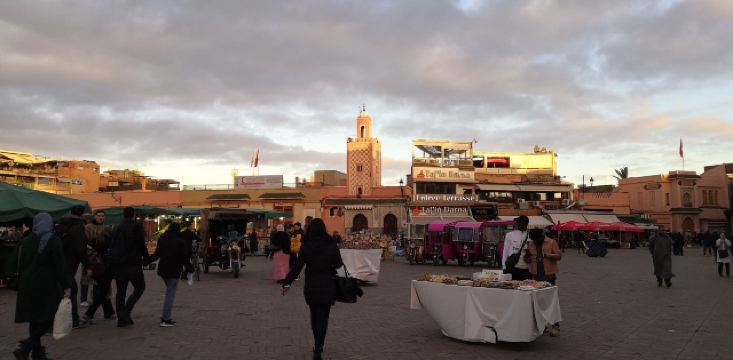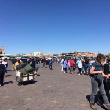 广场位于马拉喀什的老城区,既是市民广场也是市场。因为每到夜幕降临,这里便热闹起来,各种食肆、货摊搭满整个广场,耍蛇和各种传统的演奏表演吸引很多游客,广场四周则有一些两三层小楼作为餐厅或咖啡吧。