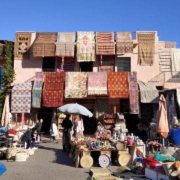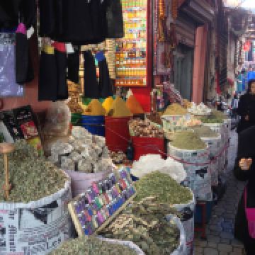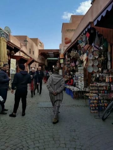马拉喀什,又称麦地那,是马拉喀什的中心区域。古老的清真寺、巨大的传统市场都位于此,还有无数的餐厅、咖啡馆,你可以在这里花上一整天和当地人一起购物,也可以找个楼顶的咖啡馆,和所有的游客一样捧上一壶薄荷茶欣赏日落。