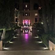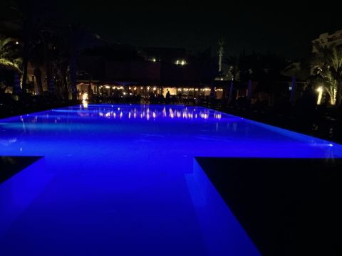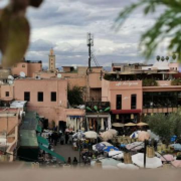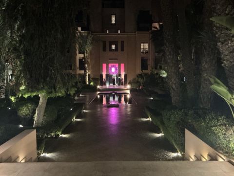 和卡萨布兰卡的白色主调相比,马拉喀什建筑多为土红色,极具沙漠特色。市中心的Mövenpick Hotel & Residence Hajar Tower Makkah (瑞亨酒店)就是一个城中度假村,有游泳池,游乐场,孔雀,鸡鸭和兔子安然踱步旁若无人,好一派人与自然和谐相处的景象。在这个酒店可以住一周也不烦。
