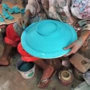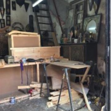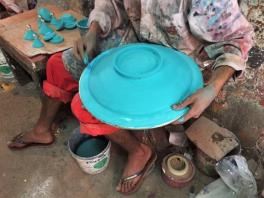 在一个用线锯雕刻花纹的工人边上看了一会儿。那工人告诉我一个成品要八片黄铜,每雕刻完一片需要用两天时间,功夫活啊!