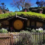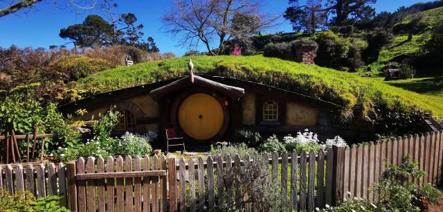 霍比特村是电影《指环王(魔戒)》的拍摄取景地。目前有44个霍比特人洞穴,每个洞屋的设计都独具匠心,每天都有工匠精心打理。在门口乘坐导览大巴进入景区,你不仅能看到门口写着“Welcome to Hobbiton”的欢迎牌,还能欣赏翠绿的山坡、明镜般的湖泊和霍比特人小木屋。穿过石头拱桥、山间小道、篱笆和花园,路过水车滚滚转动的磨坊,你将来到绿龙酒馆。酒馆完全还原了电影中的样貌,您不仅可以在这里喝一杯纯正无酒精的姜汁啤酒,还可以享用一顿美味的午餐或晚餐。