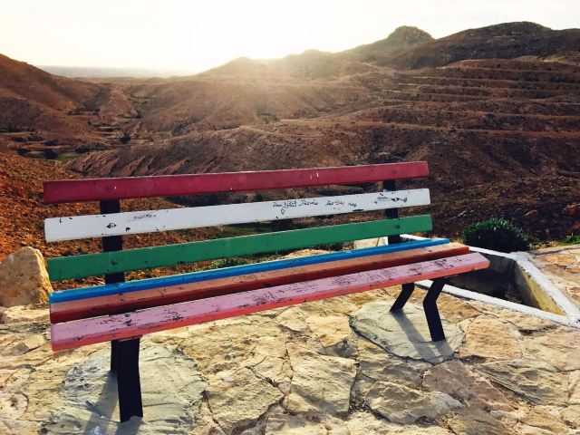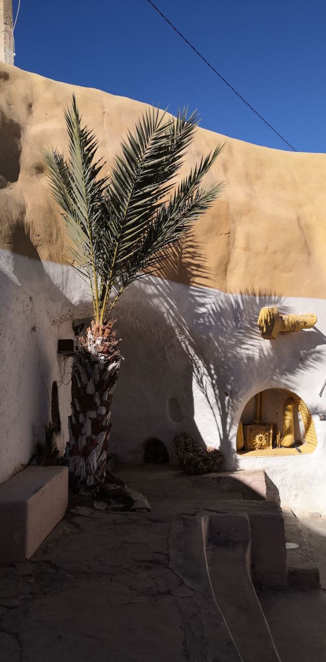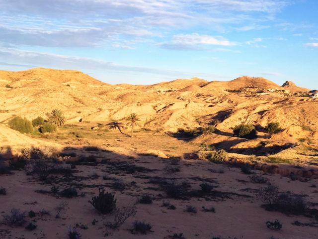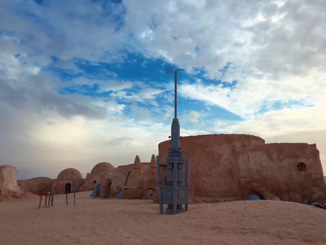 迈特马泰的南部,矗立着高达800米的山峦,山峦上褐石裸露,沟壑纵横,棕榈树努力向上生长。据说电影《星球大战》厮杀的场面正是在这里拍摄的。