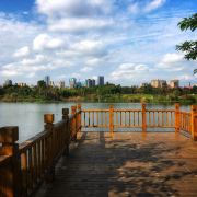 5分 超棒美丽的东坡岛湿地公园,位于眉山东坡岛西北侧,与远景楼隔东坡湖相望。占地面积非常之大,据景区介绍,有3500亩,其中绿化面积有2200亩,水域面积1300亩,是眉山市的“生态绿心”,公园以“东坡文化”为主题,是一个集湿地保育、科普教育、游览休闲于一体的多功能城市化生态湿地公园。被眉山人民亲切的称为“城市会客厅”。
